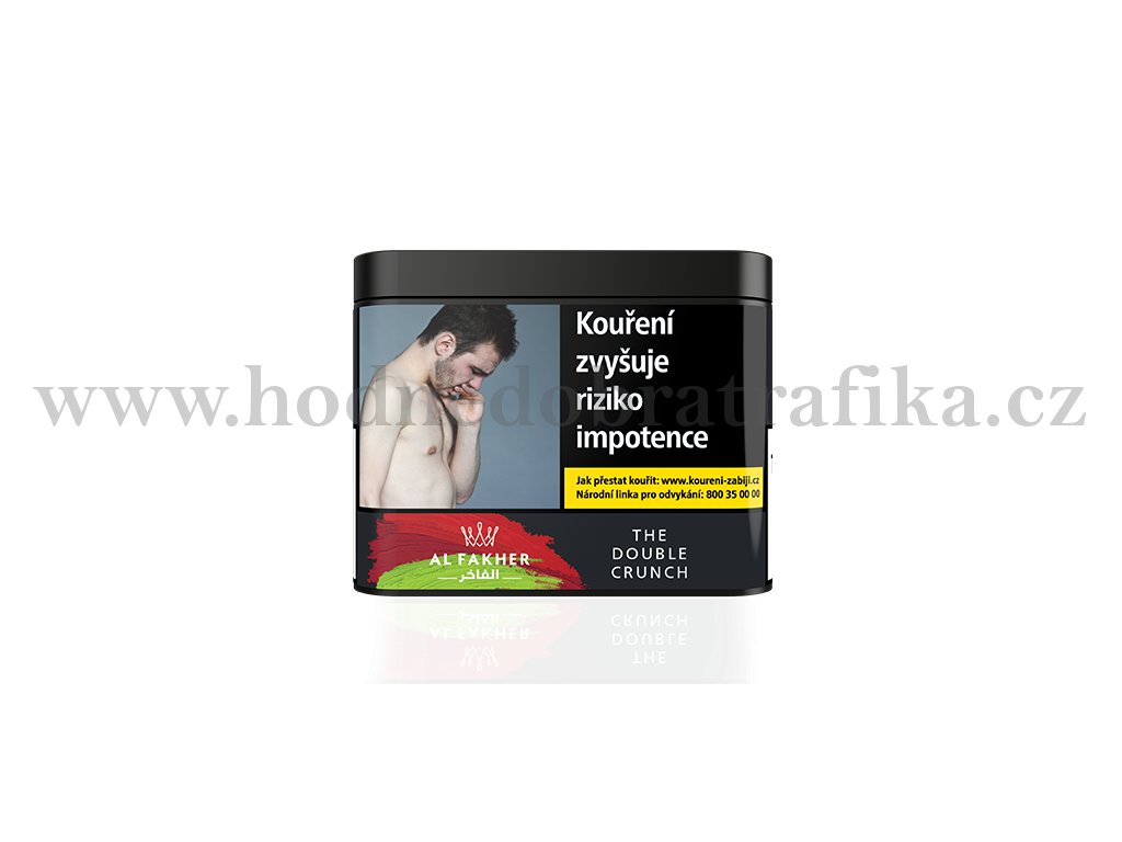 - Dostupnost: Al Fakher The Double Crunch je dostupný v balení po 200 gramech a lze jej zakoupit ve specializovaných obchodech s tabákem pro vodní dýmky.