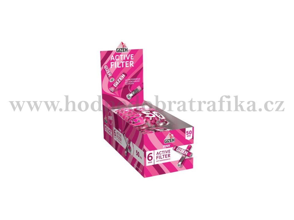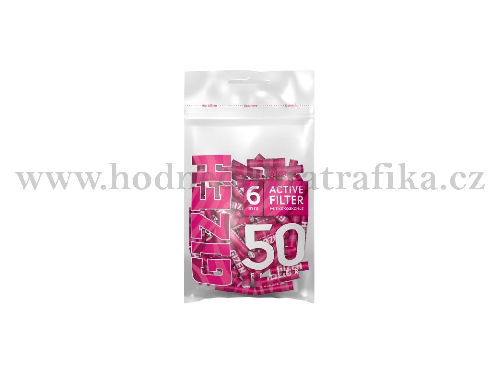 Cigaretové filtry Gizeh PINK růžový aktivní filtr 6 mm, 50 filtrů na sáček, růžový pruhovaný design
