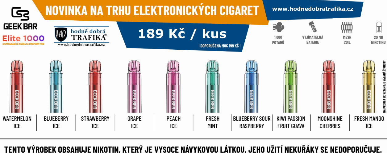 Díky mesh technologiím produkují GEEK BAR hustou páru a jsou kompatibilní s MTL stylem (ústa-plíce). V naší trafice najdete tyto prémiové produkty za skvělé ceny, což z nich činí perfektní volbu pro začátečníky i zkušené vapery. Užijte si bezpečné, chutné a bezstarostné vapování s GEEK BAR!