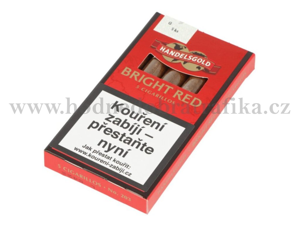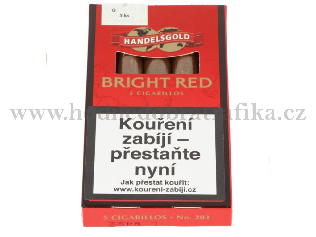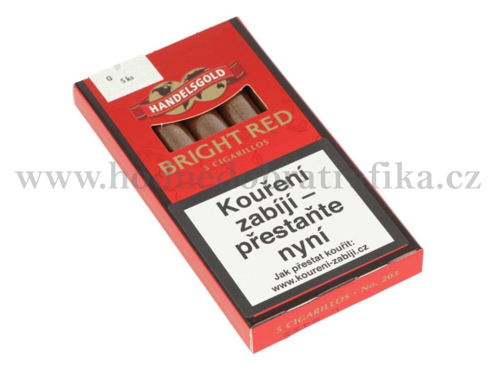 Doutníky Handelsgold Bright Red bez špičky s příchutí Strawberry. Příjemně ochucené doutníčky - cigarillos jsou balené po 5 doutníčkách v papírové krabičce.