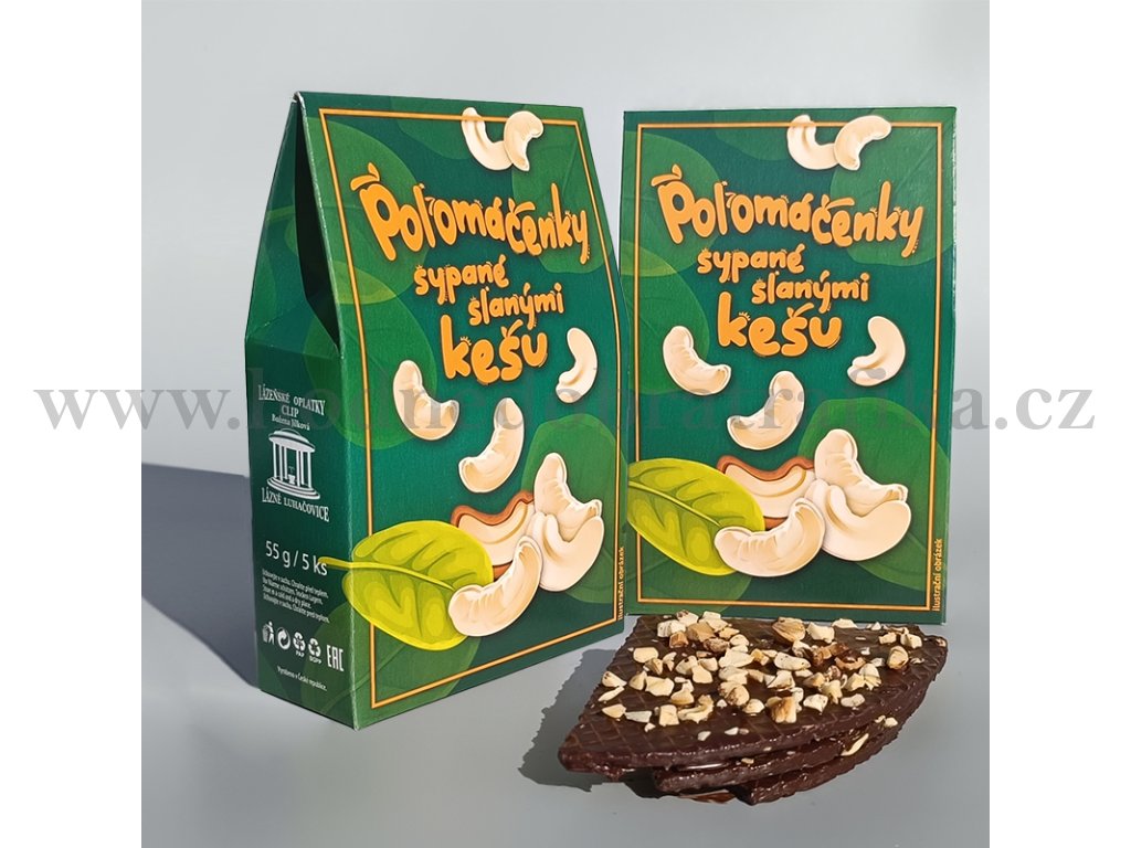 Lázeňské oplatky "Lázněnky" polomáčené v čokoládě s kešu