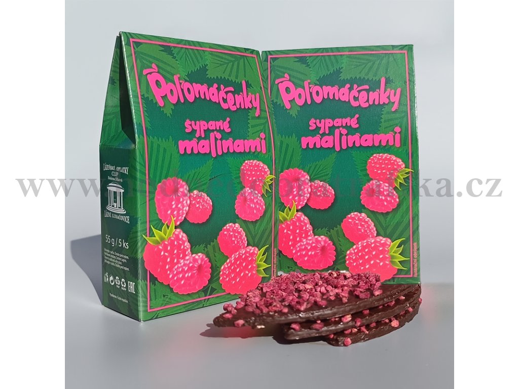 Lázeňské oplatky "Lázněnky" polomáčené v čokoládě s malinami