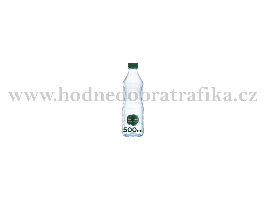 Pramenitá voda. Plněná z přírodního zdroje Natura, Teplice nad Metují, Česká republika. Obsah CO2 max. 3,9 mg/l.