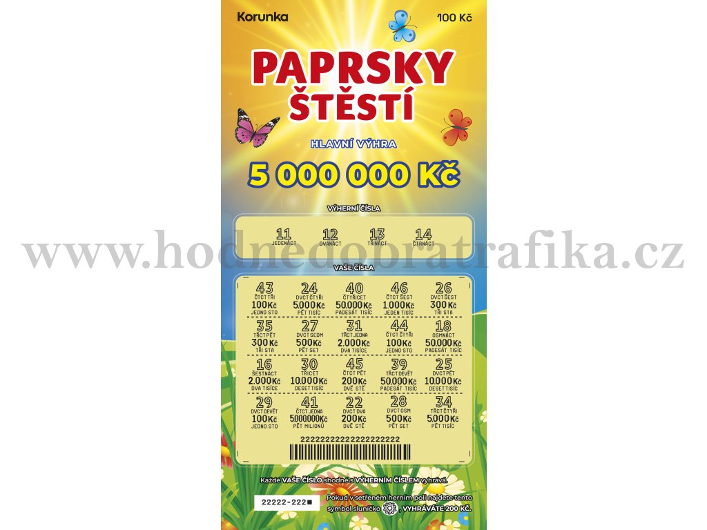 1. V herním poli losu jsou po setření 4 Výherní čísla a 20 Vašich čísel. Každé z Vašich čísel, které se shoduje s některým Výherním číslem, vyhrává výhru pod ním uvedenou.