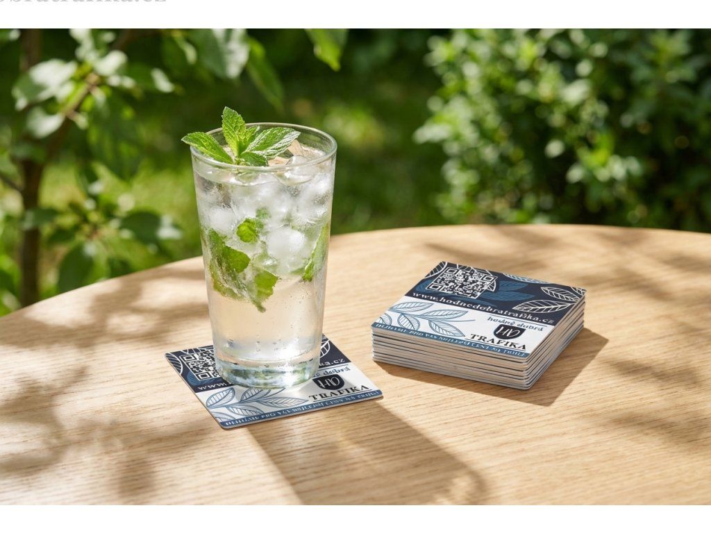 Podtácky "Hodně dobrá trafika" – sada 12 ks (85 × 85 mm) nad 3000 Kč k objednávce zdarma