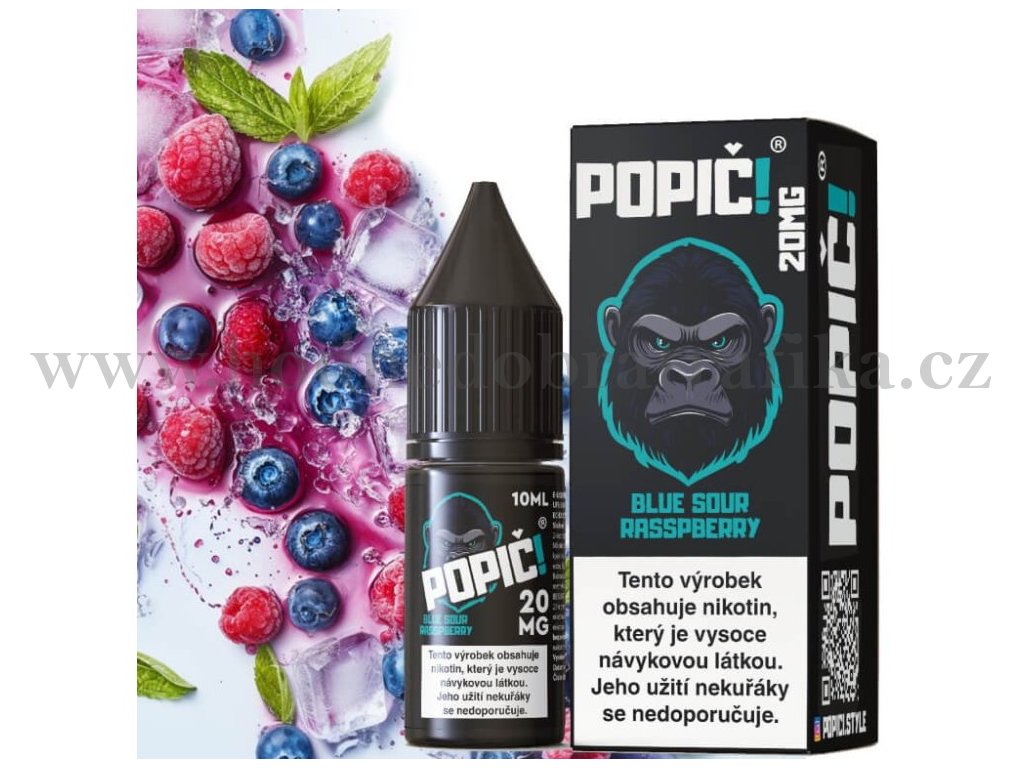 E-liquid POPIČ! Salt: Blue Sour Raspberry 20 mg je skvělou volbou pro vapery hledající výraznou a osvěžující chuť s unikátním kyselým nádechem.