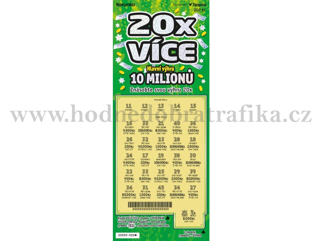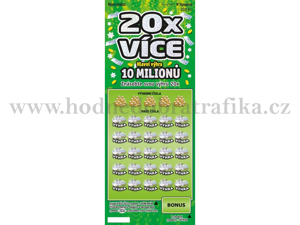 1. V prvním herním poli je po setření 5 Výherních čísel a 25 Vašich čísel. Každé z Vašich čísel, které se shoduje s některým Výherním číslem, vyhrává výhru pod ním uvedenou. Každé Vaše číslo shodné s některým Bonusovým číslem vyhrává výhru ve výši, která je součinem násobku, který je uveden u příslušného Bonusového čísla a peněžní částky uvedené pod příslušným Vaším číslem. Např. po setření losu je Bonusové číslo se symbolem „20x“ číslice „8″ a Vaše číslo je rovněž číslice „8″, u níž je uvedena peněžní částka 100 Kč, kdy se tak jedná o Výherní kombinaci a Výhra je ve výši 2 000 Kč, tj. 20 x 100 Kč.