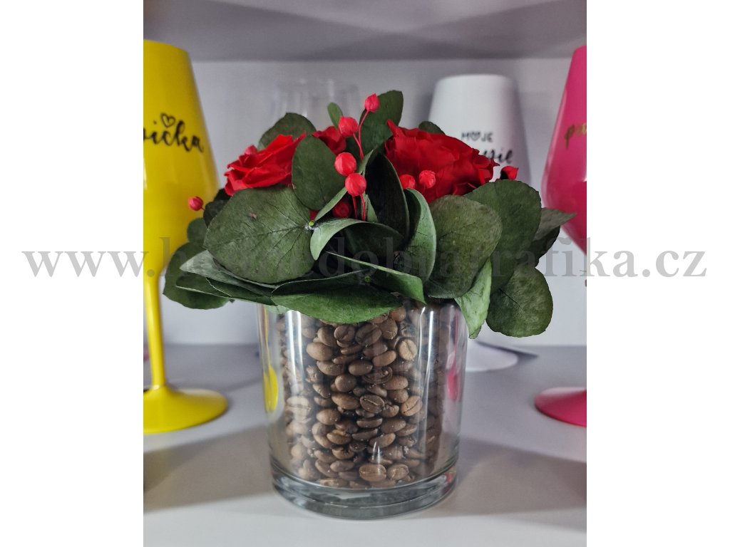 Věčná růže Glassbox (s kávou)