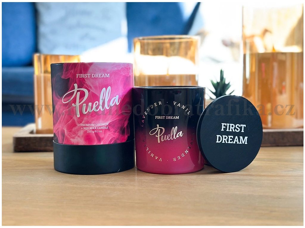 Svíčka Puella First Dream je ideální volbou pro milovníky sladkých a uklidňujících vůní. Hlavní roli v její vůni hraje jemná levandule, známá pro své relaxační vlastnosti, které pomáhají snižovat úzkost a navozovat klid. Spolu s hřejivou sladkostí vanilky vytvářejí vyvážený účinek, který podporuje pocit pohody a útulnosti. Tento lahodný soulad promění váš prostor v útočiště ideální pro relaxaci a regeneraci.