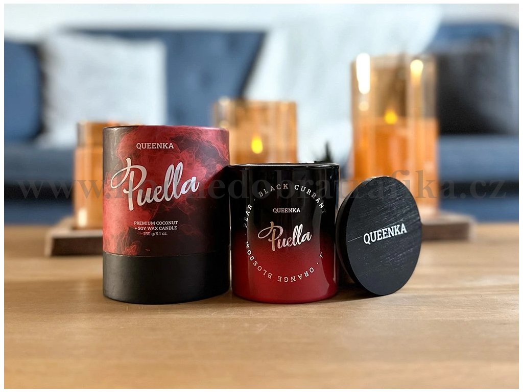 Svíčka Puella s vůní Queenka promění váš domov v majestátní útočiště. Její jedinečná symfonie ovocných a květinových tónů rychle naplní místnost vůní zralé hrušky, aromatického černého rybízu a šťavnaté broskve. Zatímco černý rybíz přináší energii a vitalitu, osvěžující pomerančový květ dodává vůni eleganci a svěžest. Bohatá sladkost pralinky vytváří hřejivý a uklidňující zážitek, který vám zvedne náladu a vnese do vašeho domova atmosféru noblesy a důvěry.