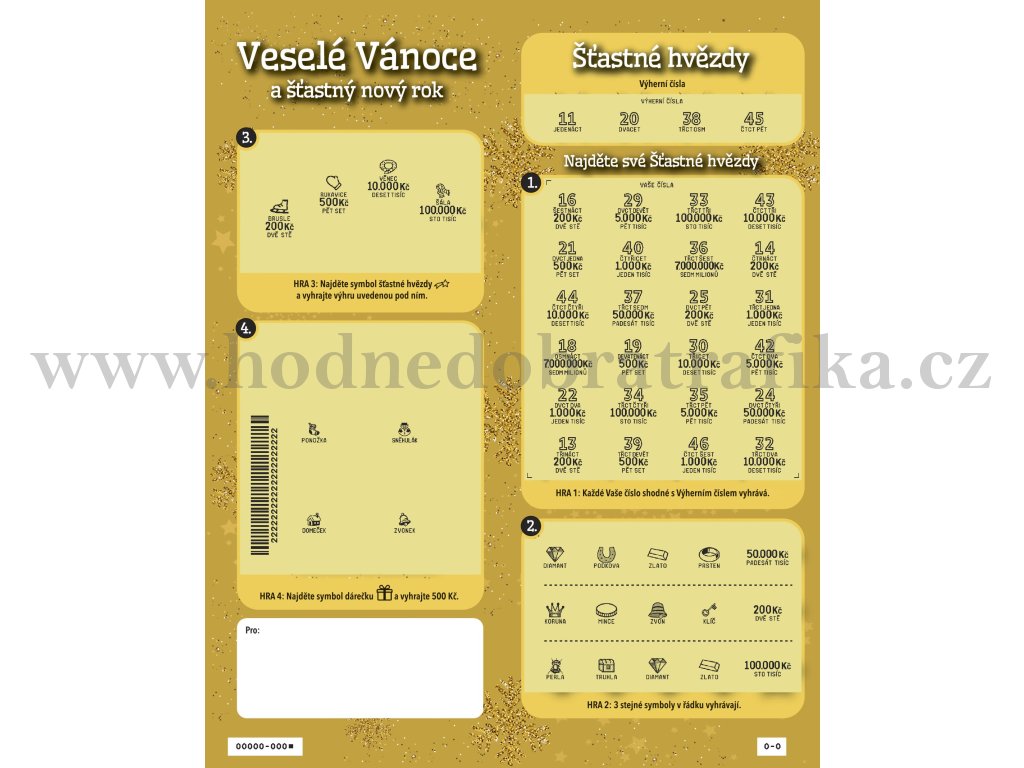 1. V prvním herním poli Losu označeném HRA 1 setřete 4 Výherní čísla a 24 Vašich čísel. Každé Vaše číslo, které se shoduje s některým Výherním číslem, vyhrává Výhru pod ním uvedenou.